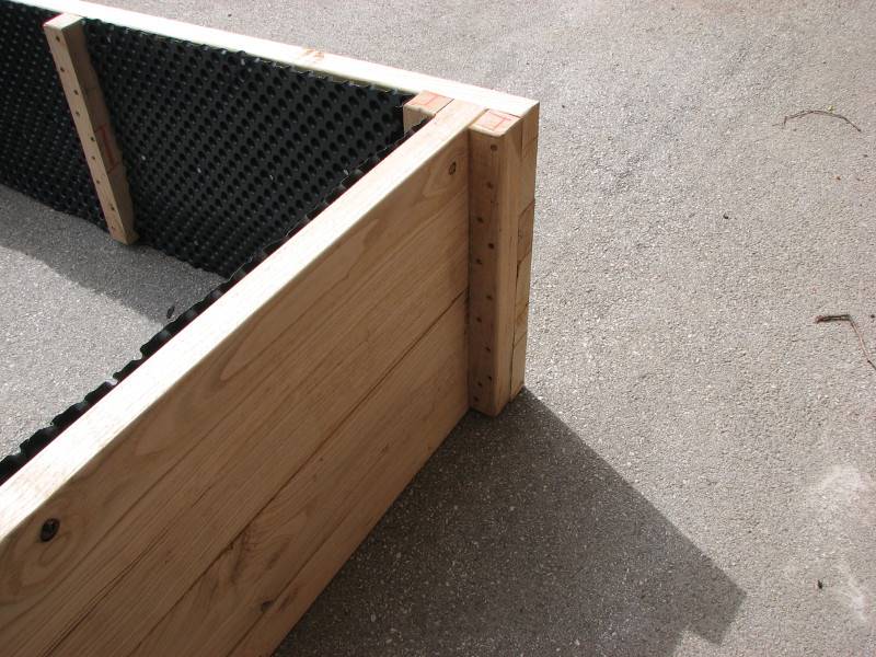 Notranja stran grede je obdana z gumbasto folijo, ki preprečuje direktni stik med lesom in zemljo. Na dno je položena pocinkana mreža, ki preprečuje dostop voluharju.